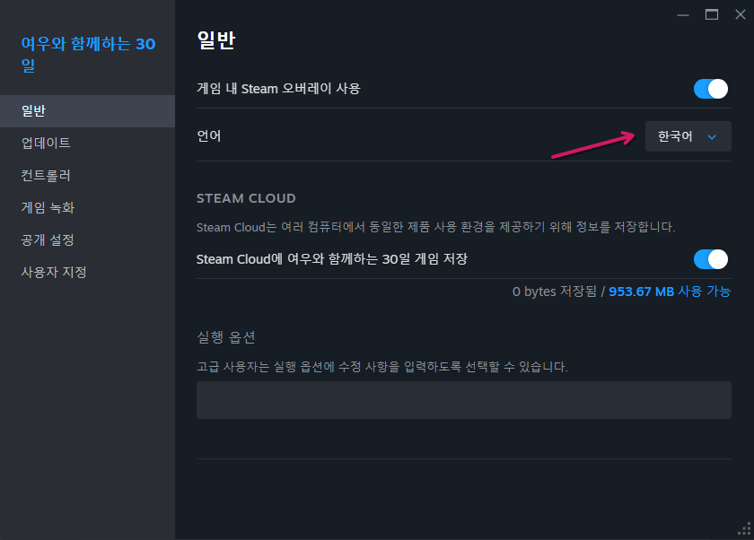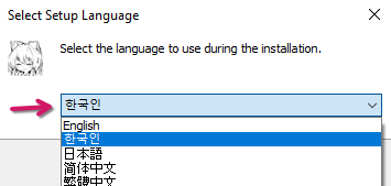 설치가 완료되면, Steam에 우선 순위로 지정된 언어를 확인 합니다. 만약 언어 선택창이 뜨지 않는다면 이 단계는 무시해도 좋습니다.