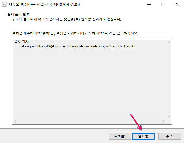 “설치(Install)”를 클릭하면 패치가 진행됩니다.