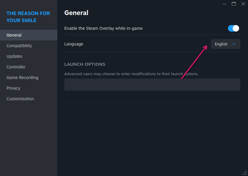 Once installation is complete, verify that the correct language is selected in the Steam properties of the game. If the Language section doesn't appear, you can ignore this step.