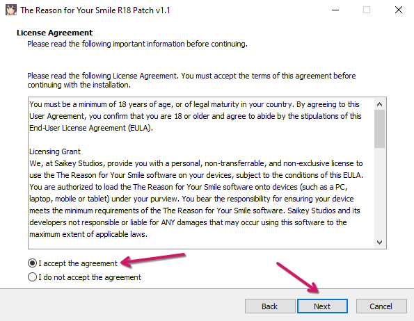 Read the License Agreement and accept the terms by clicking on "I Accept". Click "Next" to continue.