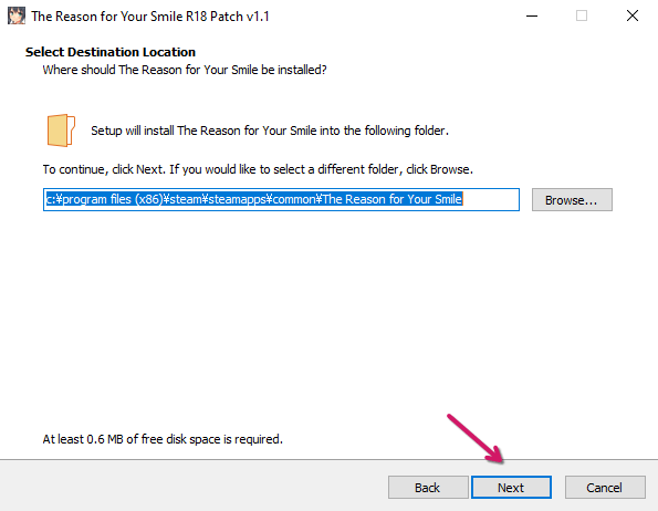 If you are using Windows, the installation folder should be found automatically. If you are using a different operating system, you will need to find the game folder manually. For example, Steam stores games in the Steam Deck's "/home/{Your Username}/.steam/steam/steamapps/common/" folder by default. Click "Next".