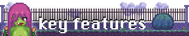 – Hand-drawn pixel art and animated scenes.