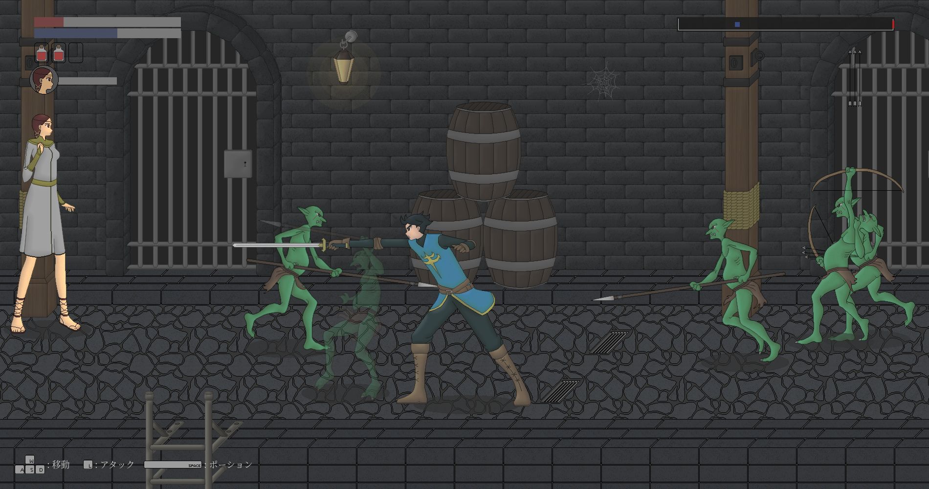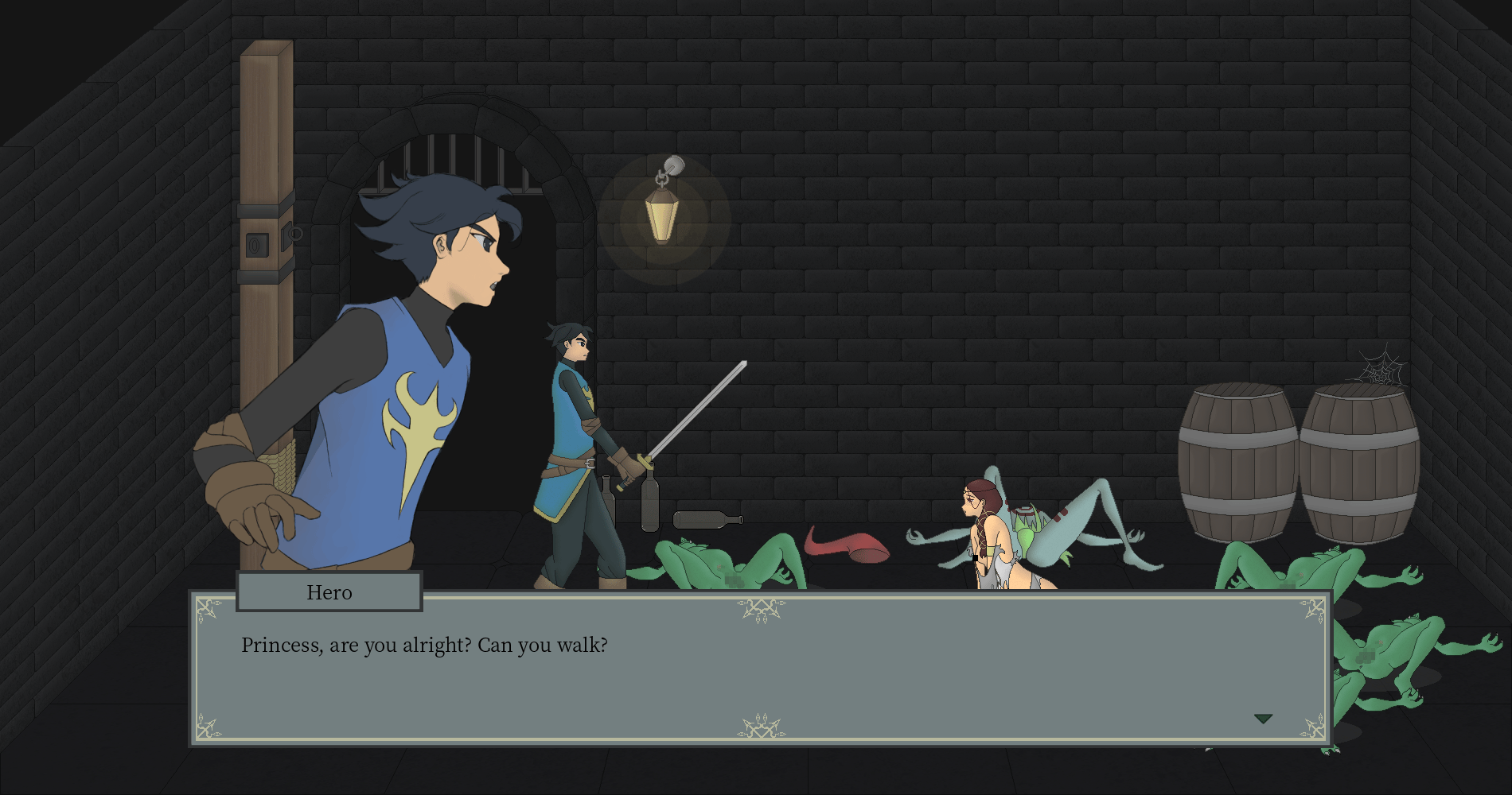 “My Princess Bride” is an NTR beat ’em up game. You play as the hero who saved the king of the realm from a goblin ambush. And as a reward, you were given the princess’ hand in marriage. However, on the day of the wedding, the goblins invaded the castle seeking revenge. The king ordered you to escape with the princess through the dungeon while he and the soldiers held off the attackers. Unfortunately, the goblins have overrun the dungeon as well. Can you fend off the swarms of goblins and bring your new bride, the princess, to safety?