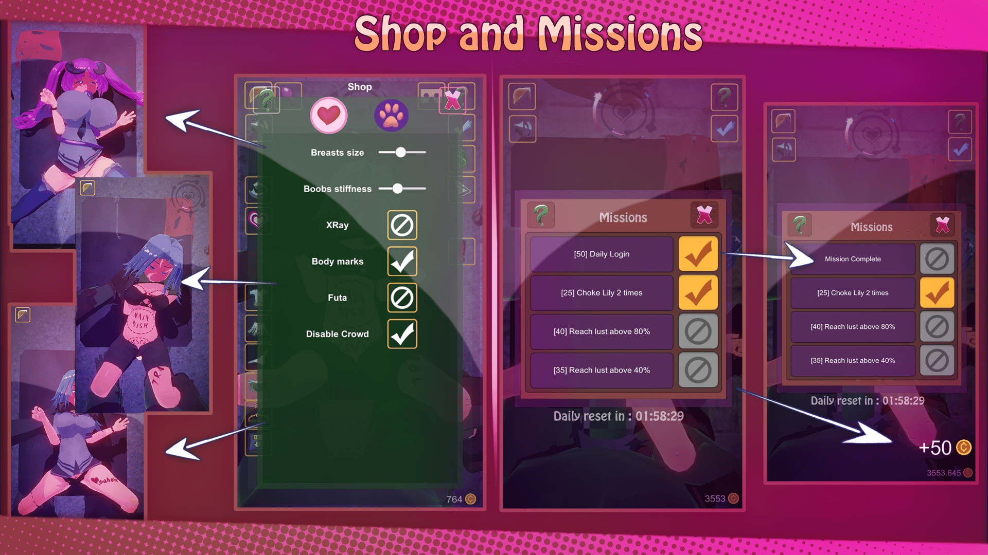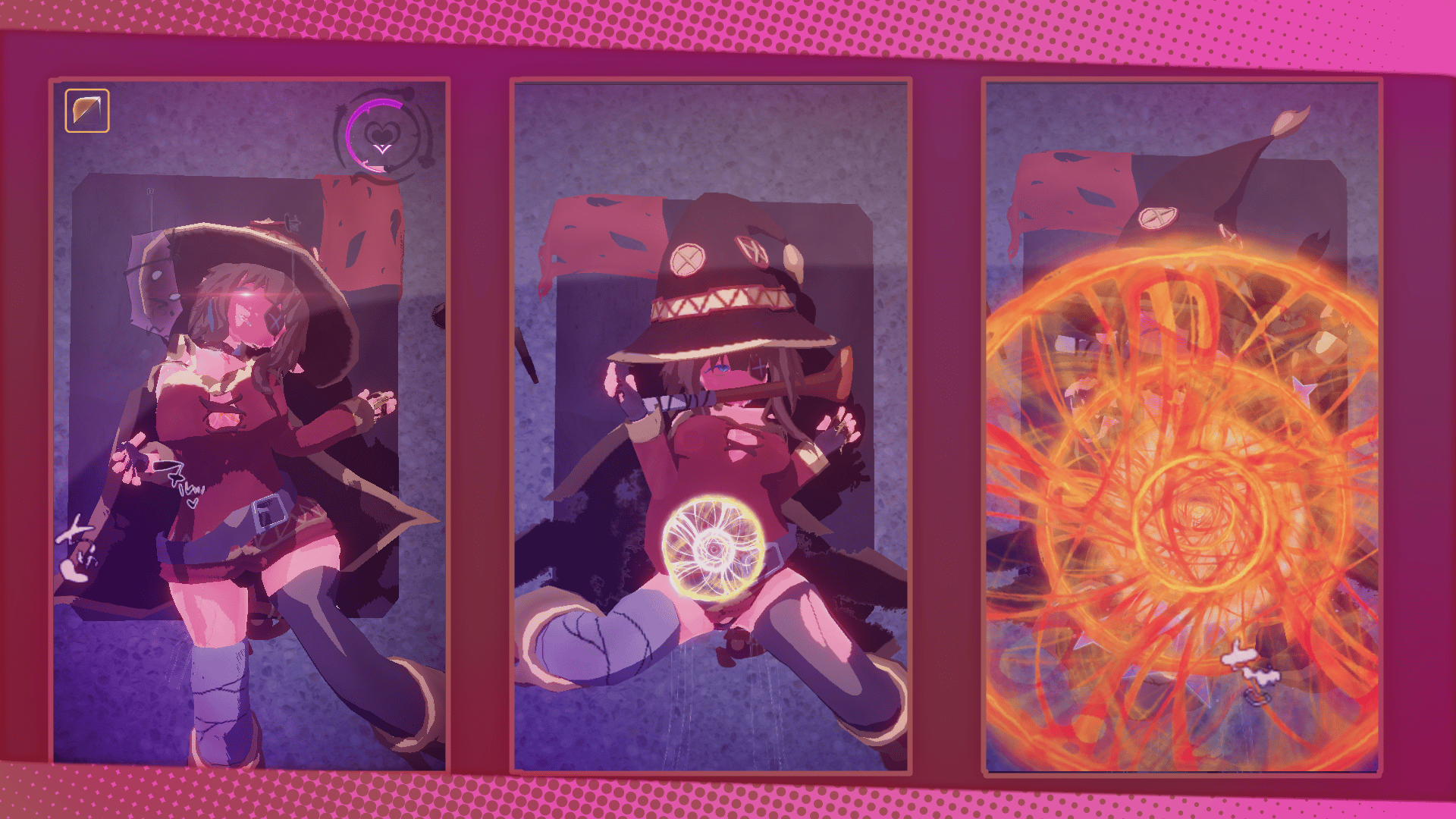– Explosion effect : Requires ‘Explosive girl’ cosplay bundle to be active (selected/active), can be seen when fully filling the green gauge.