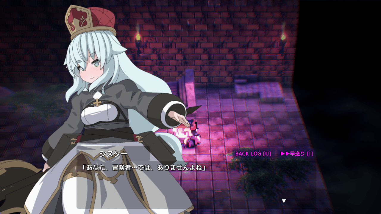 The demon promised to remove the crest if the Sister could retrieve a certain crystal from the dungeon. Without knowing how to dispel the curse, the Sister had no choice but to obey the demon’s wishes and challenge the dangerous dungeon of Yarashina City once again.