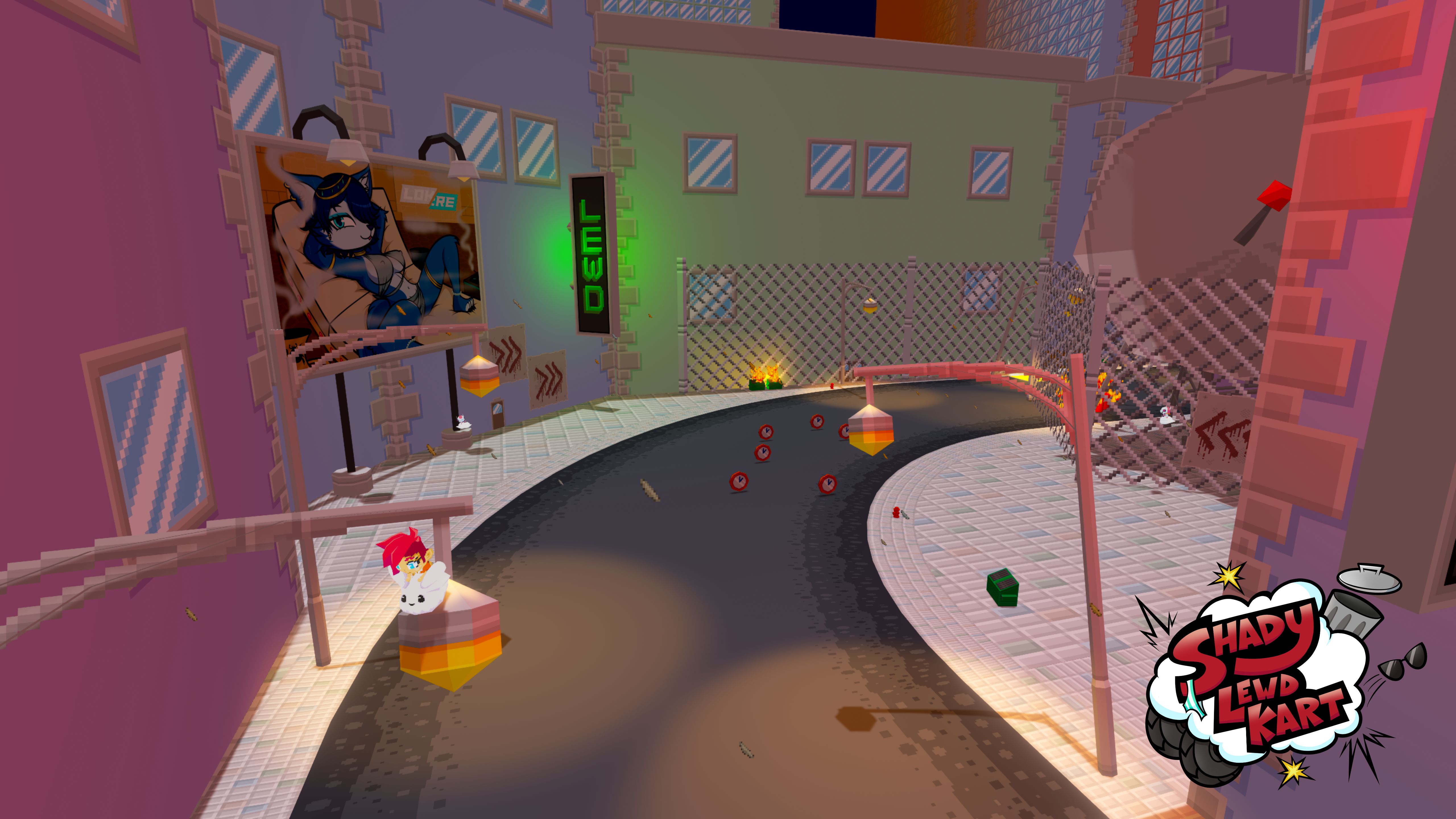 Shady Lewd Kart takes go karting party games and mashes it with a dating sim to give you fast power sliding game play, sexy power-ups and unlocks. The first ever H-Kart game!