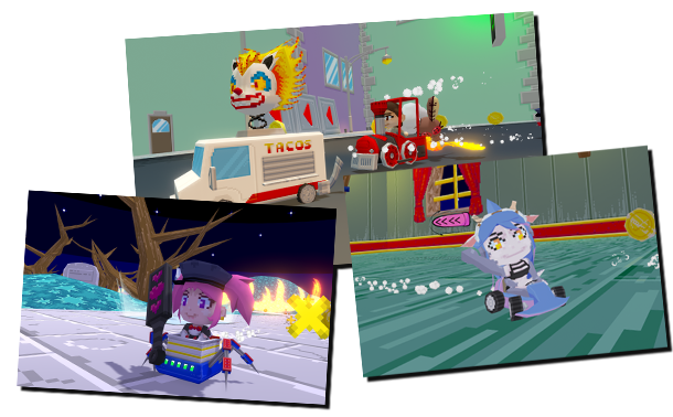 -Karts, boats, spaceships…you name it! Over 50 karts to drive from the Newgrounds tank to spider waifus!