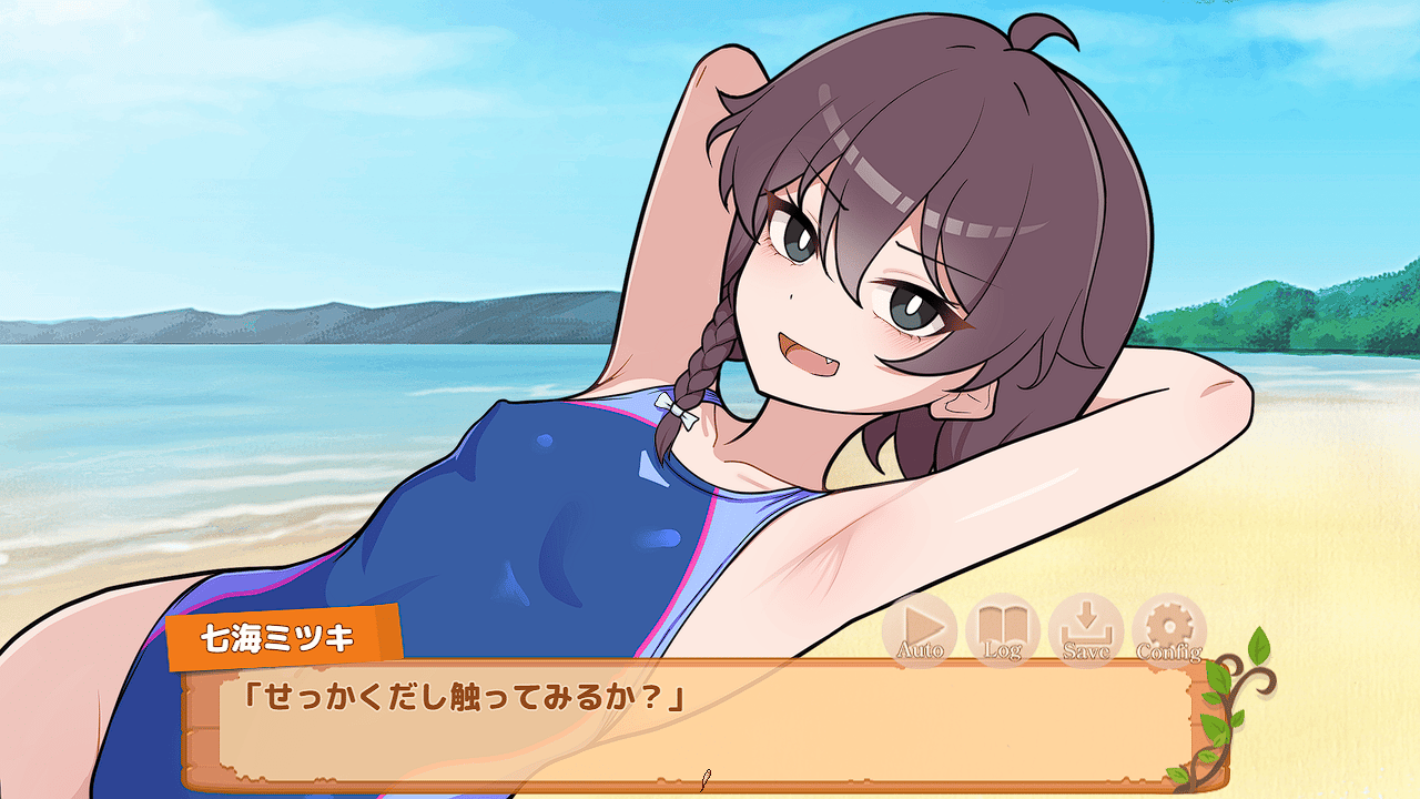 You and your childhood friend, Mitsuki Nanami, had not kept in contact for many years. But one day, she invited you on a trip for summer vacation. While on the trip, your ship was caught in a great storm, and the two of you ended up stranded on a desert island.