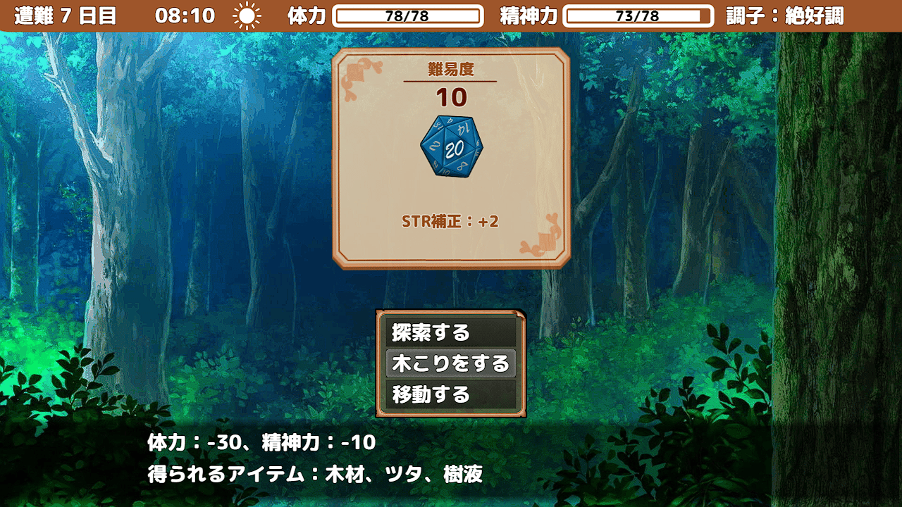 Do all you can to survive on a desert island. Explore, create a shelter, search for supplies, fish, hunt, cut wood, mine, and much more. Train your stats and craft tools to increase your chances of success, discover new crafting recipes, and make your shelter feel a little more like home each day. But be careful not to overexert yourself, physically or mentally. This isn’t only your survival story, and Mitsuki is always there to help you.