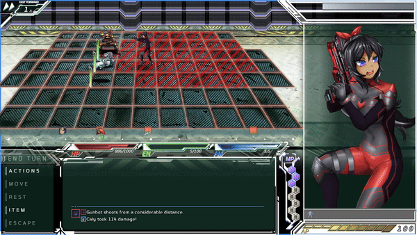 Tactical Turn-based Combat: The grid-based battlefield allows for strategic tactical movement and combat engagements. Each skill has range that defines from how far you can attack or how far you need to stay away from your foes. Be careful if your outfit gets damaged, as enemies might alter their tactics and try to seduce Caly!